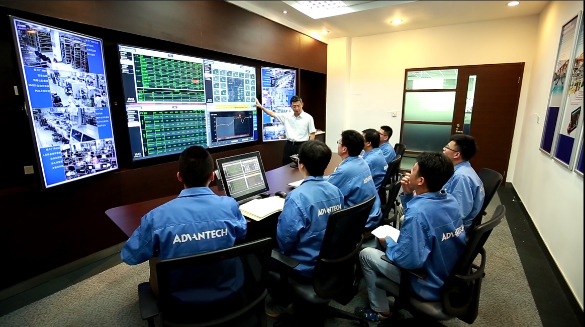 研华的“安灯系统可视化方案”是MES功能的一个分支,除了应用在现场作业之外,还延伸到决策者运筹帷幄的战情室。在生产现场,安灯系统结合WebAccess/SCADA软件支持和UNO-2372电脑运算,于TPC-1551T-E3AEx上呈现,员工可以通过工位上手动触屏报工输入的方式启动异常呼叫,内容可以是人员作业、物料、方法、质量甚至是环境、安全异常等任何问题,设备异常亦可透过数据采集的方式及时获知,同时兼具人员到岗签到和异常解除等操作。现场管理人员通过车间指示灯的灯塔提示、声音报警讯息、邮件提醒、信息推送等即可及时进行处理,减少突发问题的处理时间,进而减少生产的停顿时间。安灯具备多级异常处理逻辑,按照异常持续时间的不同层层通报到相应的管理者,合理利用管理资源。同时,安灯系统也能够收集生产线上设备的相关生产讯息、工位作业管理讯息例如出勤率、工单达成率、工位标准用时、效率分析等,并且进一步处理这些信息,呈现在现场看板让管理人员可以直接掌握生产进度、质量、异常等状况,为他们提供快速决策的依据,改善现场管理的疏漏。