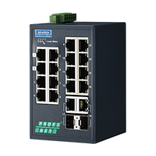 16个快速以太网端口+ 2个千兆铜缆/ SFP组合端口(EKI-5626C / I-PN)